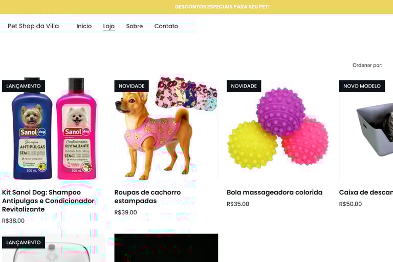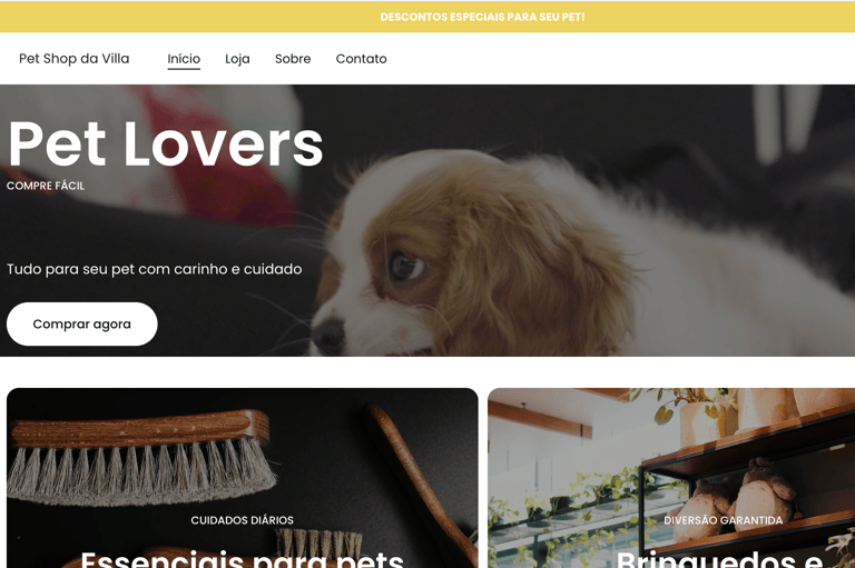Páginas: Home + Serviços ou LOJA com 15 produtos inseridos + Sobre + Contato + Agendamentos (se aplicável).
